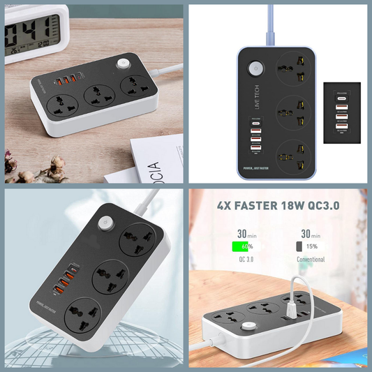 Maxline 3 Socket & 4 USB With Lightning Port Fast Charging Multiplug