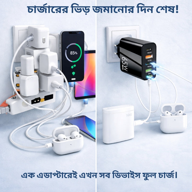 • এক অ্যাডাপ্টারেই পুরো চার্জিং সেটআপ